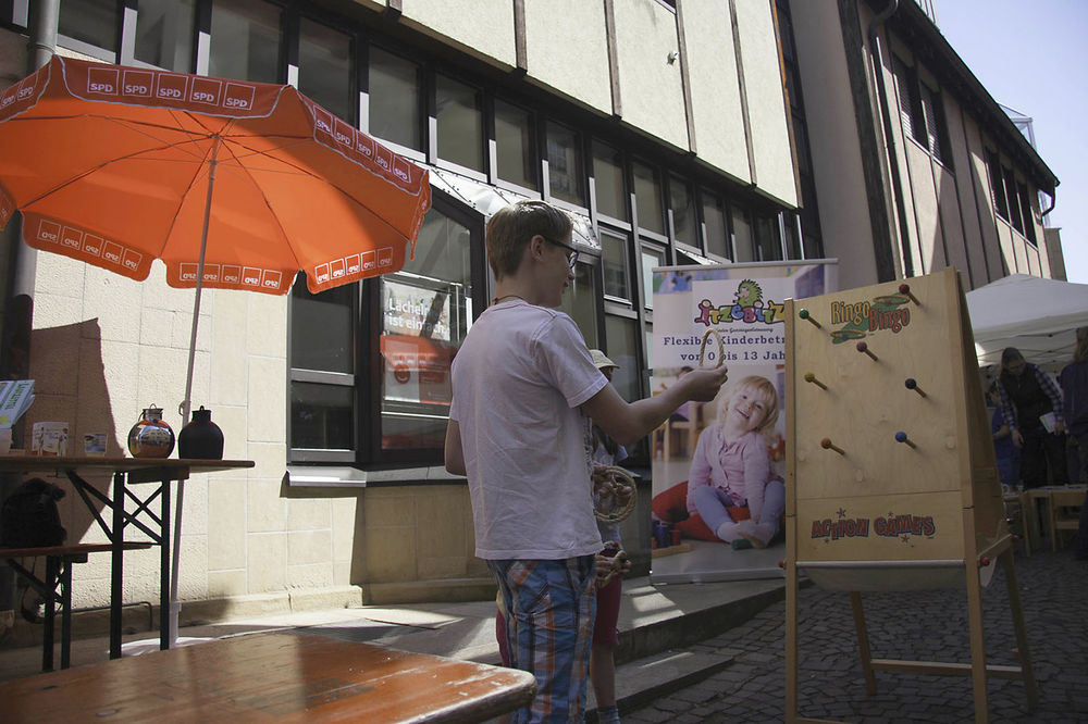 Bei bestem Frühsommerwetter durften die Kinder ihre Geschicklichkeit am Stand des SPD-Ortsvereins unter Beweis stellen. Beim Ringewerfen haben insbesondere die jüngeren Besucherinnen und Besucher ihre Fertigkeiten getestet. Die größeren Kinder probierten sich am kniffeligen "Kugelparcour".