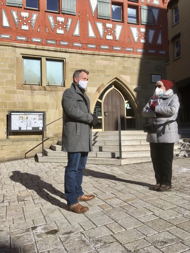 Der zweite Teil seines Besuchs führte Daniel Haas weiter nach Großbottwar. Hier wurde er bereits von der Fraktionsvorsitzenden im Gemeinderat Angelika Maier erwartet. Sie zeigte sich sehr erfreut, daß trotz der aktuell schwierigen Lage ermöglicht werden konnte, sich vor Ort zu treffen. "Vieles kann zwar online bewerkstelligt werden, doch der direkte Austausch untereinander ist nach wie vor wichtig, um Entwicklungen und Probleme vor Ort zu besprechen und zu erkennen", sagte Angelika Maier zu Beginn des Gesprächs. Daniel Haas bestätigte dies und ergänzte: "Wenn ich als Landtagsabgeordneter gewählt werde, möchte ich regelmäßig die Orte im Wahlkreis besuchen, um mit den Menschen im Gespräch zu bleiben - die Zeiten, als Abgeordnete nur in ihrem Wahlkreisbüro residierten sind glücklicherweise vorbei."