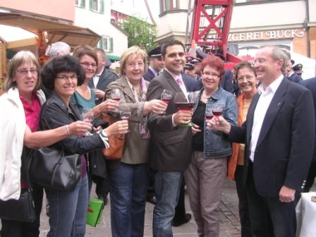 Zu den politischen Gästen bei der Eröffnung des Großbottwarer Straßenfestes gehörte auch der Landtagsabgeordnete Thomas Reusch-Frey. Dabei nutzte er die Gelegenheit zu verschiedenen Begegnungen und ausführlichen Gesprächen. Die Bandbreite der Themen ging von der Nutzung der Windkraft im Bottwartal über die Diskussion zur Personalsituation in den Pflegeheimen bis zu einem Gewerbegebiet an der Autobahn. Dass dem SPD-Politiker der Rahmkuchen und der Zwiebelkuchen vorzüglich schmeckten, durfte bei alledem nicht unerwähnt bleiben ebenso wie das große Engagement der Vereine bei diesem gelungenen Fest.